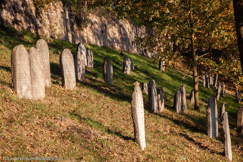 100 metrů od náměstí směrem na Sušici se v příkré stráni nalézá rozlehlý židovský hřbitov.