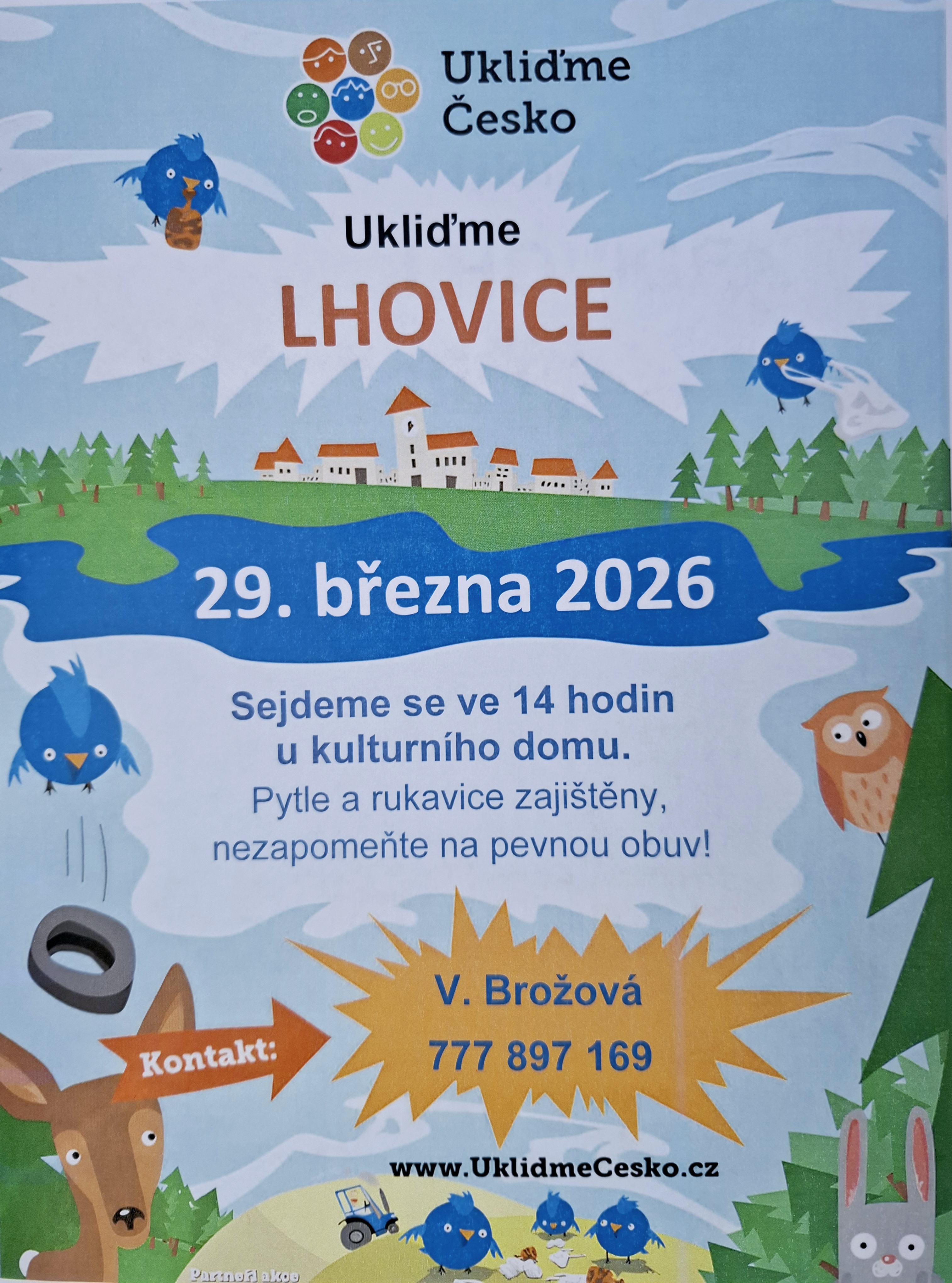 Přijďte se podílet na akci Ukliďme Česko v okolí Lhovic. Podrobnosti naleznete v příloze.